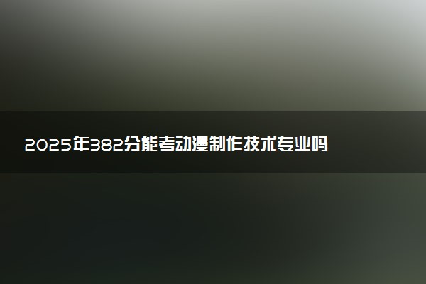 根据往年各大学动漫制作技术专业的录取分数线来看,382分可以考上动漫制作技术专业。但考生需要注意,具体录取分数会受到多种因素的影响,包括考生的省份、科目类别等,具体以各省当年的实际情况为准。