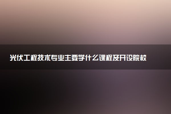在志愿填报时考生和家长就想知道光伏工程技术专业主要学习什么?下面我们就用详细说一下:光伏工程技术专业代码:430301、门类:能源动力与材料、专业类:新能源发电工程类,光伏工程技术专业课程主要有:单片机应用技术、光伏电站运行与维护、电工电子技术、新能源电源变换技术、光伏产品设计与制作、光伏电站建设与施工等课程。