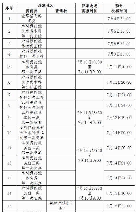 本科提前批:录取时间为7月8日至12日,填报结束后9天开始录取,考生在7月8日-12日期间可陆续查询到录取结果。