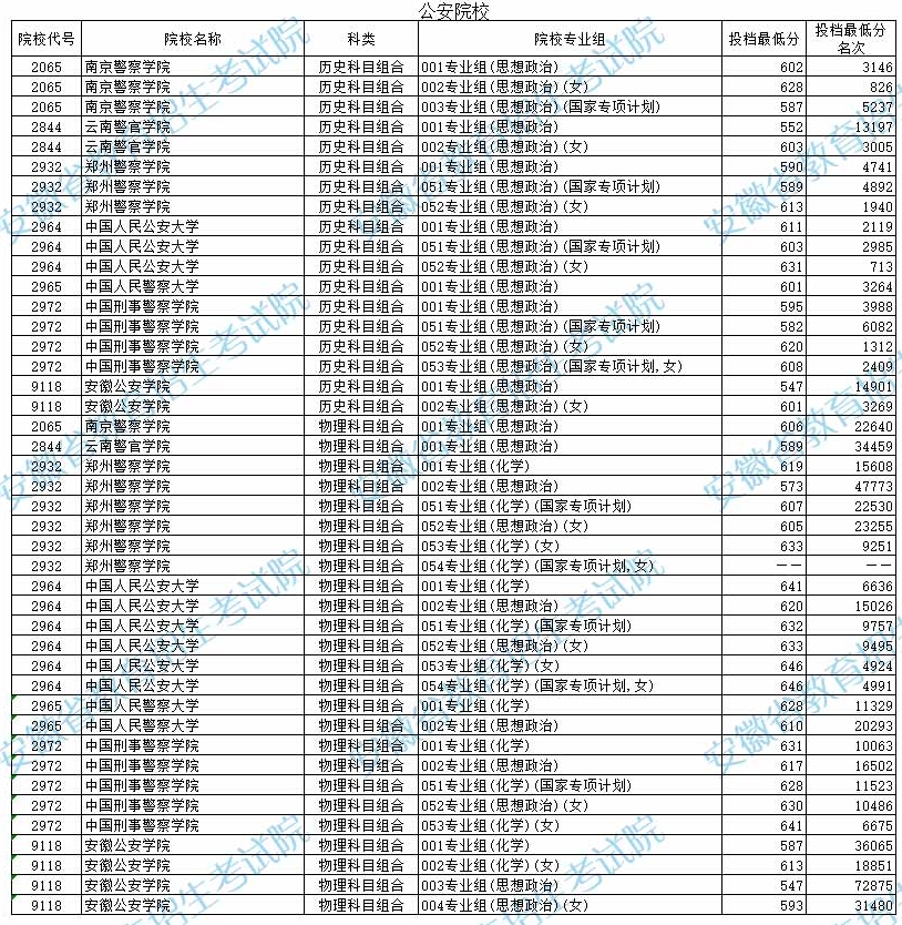 安徽省2025年普通高校招生普通本科提前批院校投档最低分及名次(平行志愿首轮投档)公布如下: