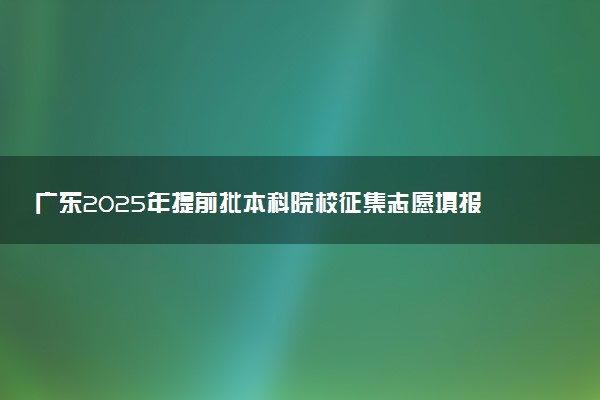 广东2025年提前批本科院校征集志愿网上填报时间为7月14日15:00至15日9:00.投档录取时间为7月15日。考生必须按时在网上填报相应的提前批本科院校专业组志愿,并点击“志愿确认”按钮获取短信验证码或人脸核验中的任一种方式进行志愿确认。