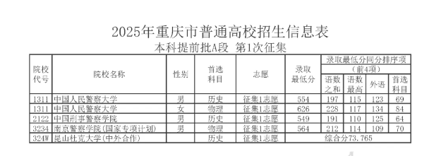 院校名称:中国人民警察大学;性别:男;首选科目:历史;志愿:征集1志愿;录取最低分:554。