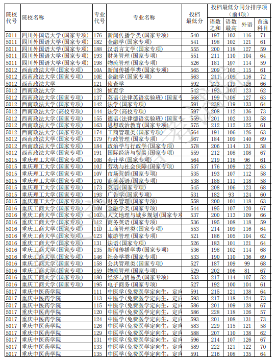 综合类高校:北京大学654分,清华大学654分,复旦大学643分,上海交通大学626分,南京大学637分,浙江大学638分,武汉大学612分,中山大学610分,吉林大学592分,山东大学593分,重庆大学572分,四川大学585分。