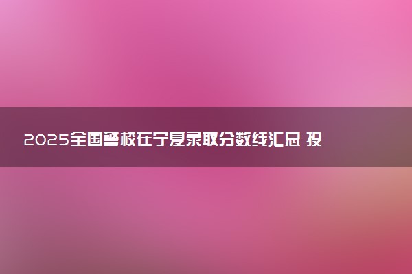 全国警校2025年在宁夏最低录取分数线目前还没有发布,不同学校及专业的录取情况是不同的,具体分数情况大家以官方发布最新通知为准。以下是小编整理的2024年部分警校在宁夏的最低录取分数线情况,大家可以参考一下。
