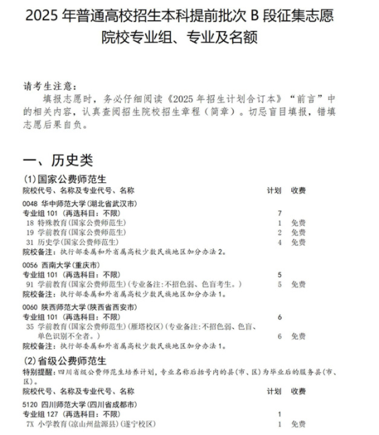 四川2025本科提前批次B段未完成计划高校征集志愿的院校名单发布,以下是详细内容,大家可以看一看: