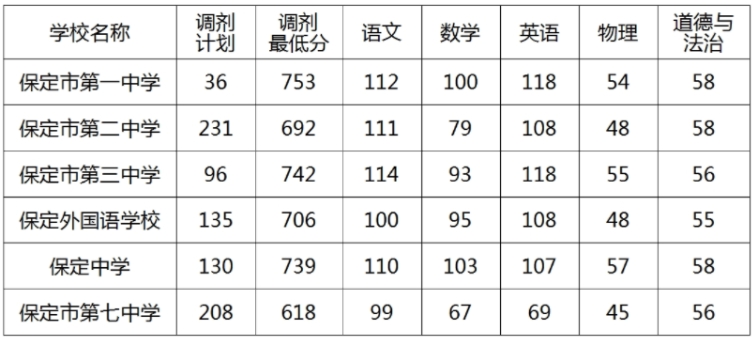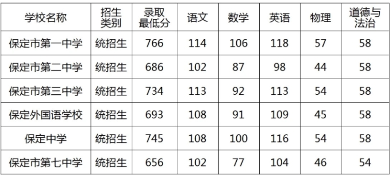 2025年河北保定市主城区公办省级示范性普通高中第一批次录取分数线公布如下: