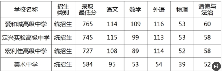 说明:民办省级示范性普通高中统招生录取时实行平行志愿录取。当多名考生文化总成绩相同且多于招生计划数时,须依次比较语文单科成绩、数学单科成绩、外语单科成绩、物理单科成绩、道德与法治单科成绩,由高到低录取,如各科成绩完全相同时全部录取。