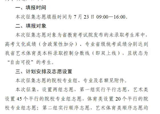 四川省2025年艺术体育类本科批次未完成计划院校的第四次征集志愿填报时间为7月23日。