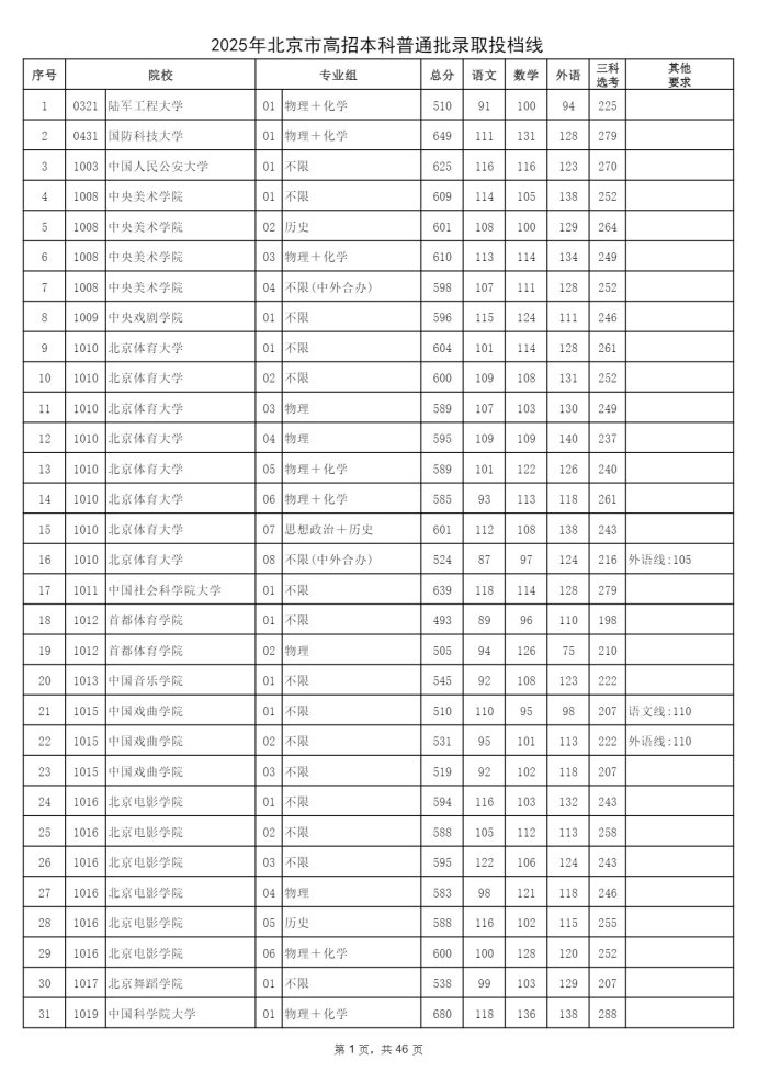 对北京考生来说,高校录取分数线是考生填报志愿的重要参考依据,通常分为本科批、专科批等批次,不同院校及专业分数线差异较大。影响分数线的因素包括招生计划、报考热度、地域优势、学科实力等。2025在北京招生的各985/211及普通大学投档录取分数线陆续公布,下面一起来看看吧。
