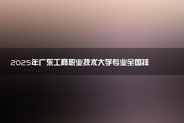 在最新校友会2025中国职业技术大学排名中,广东工商职业技术大学位列全国第12名,名列2025中国财经类职业技术大学排名第1名,位列2025广东省职业技术大学排名第2名。在校友会2025中国大学星级排名中,广东工商职业技术大学荣膺2025中国五星级大学(5★)美誉,跻身中国一流职业技术大学行列。