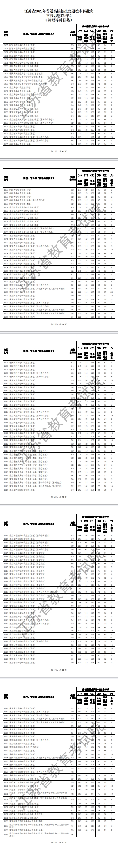 江苏省2025年普通高校招生普通类本科批次平行志愿投档线如下: