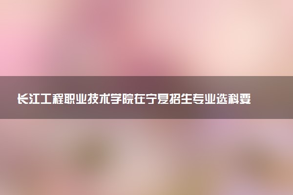 长江工程职业技术学院在宁夏招生专业选科要求部分专业,除了要求理科选科外,还有额外的限制条件。需要注意的是,招生专业和选科要求可能会随年份有所变化。2具体的招生情况,最终要以长江工程职业技术学院官网发布的招生专业目录、各专业招生人数、专业与选科要求等信息为准。所以,宁夏的同学们如果想报考长江工程职业技术学院,要密切关注学校官网发布的最新消息。