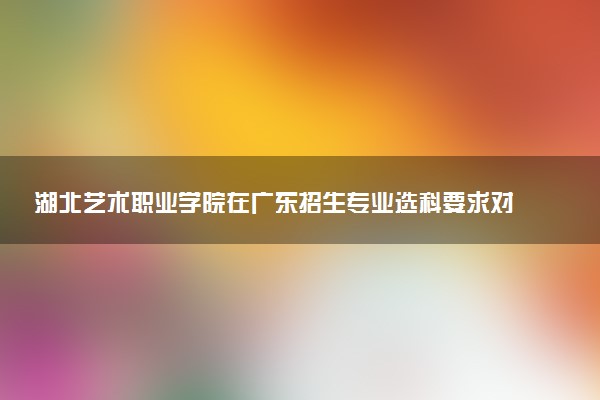 湖北艺术职业学院在广东省的招生专业选科要求已经公布,最新选科要求以湖北艺术职业学院官方发布的招生章程为准。考生需根据目标专业选科要求,提前规划高中选考科目组合。艺术类考生需参加广东省统考,文化分需达到相应控制线。