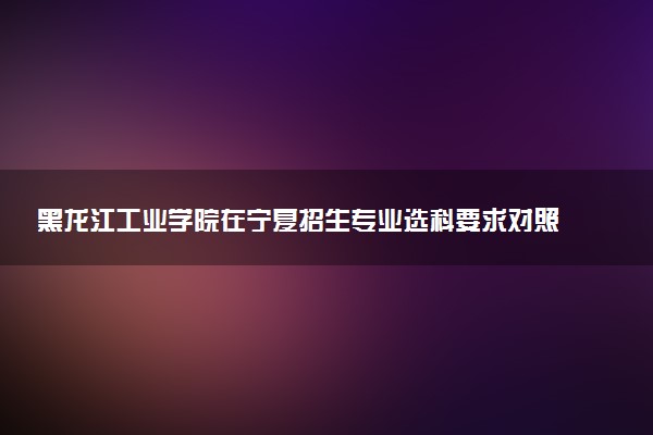 黑龙江工业学院在宁夏招生专业选科要求。所有专业均面向宁夏理科考生,无选考科目组合要求(如物理+化学等),仅需符合宁夏高考理科报考条件。如需进一步确认最新选科政策,建议通过黑龙江工业学院本科招生网或宁夏教育考试院官方渠道查询。