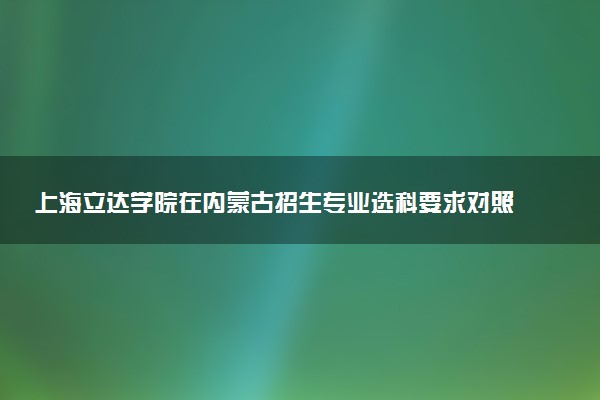 截至2025年,进入新高考模式后,报考上海立达学院,每个专业都有对应的选考科目要求,如果不满足要求,是无法填报该专业的。要是想了解具体某个专业在内蒙古地区的选科要求,建议去上海立达学院的招生官网查看最新的招生计划和选科要求,也可以拨打学校的招生咨询电话问一问,这样得到的信息才是最准确的。