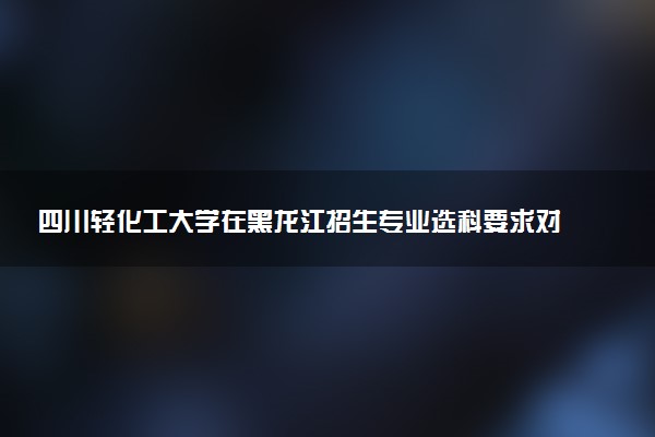 四川轻化工大学在黑龙江省的招生专业选科要求,根据不同专业对选考科目有明确限制,理工类专业普遍要求物理+化学,人文社科类多无选科限制,报考时需核对目标专业的具体要求。建议考生通过四川轻化工大学官网或黑龙江省教育考试院发布最准确的选科信息。