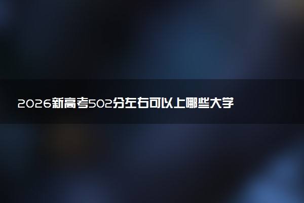 2026年新高考502分左右可以上的大学有:山东农业大学、怀化学院、温州医科大学仁济学院、福建中医药大学、成都艺术职业大学、湖南汽车工程职业大学等,502分左右能上的大学名单因省而异,要特别注意对比位次和批次。具体名单请见下文表格: