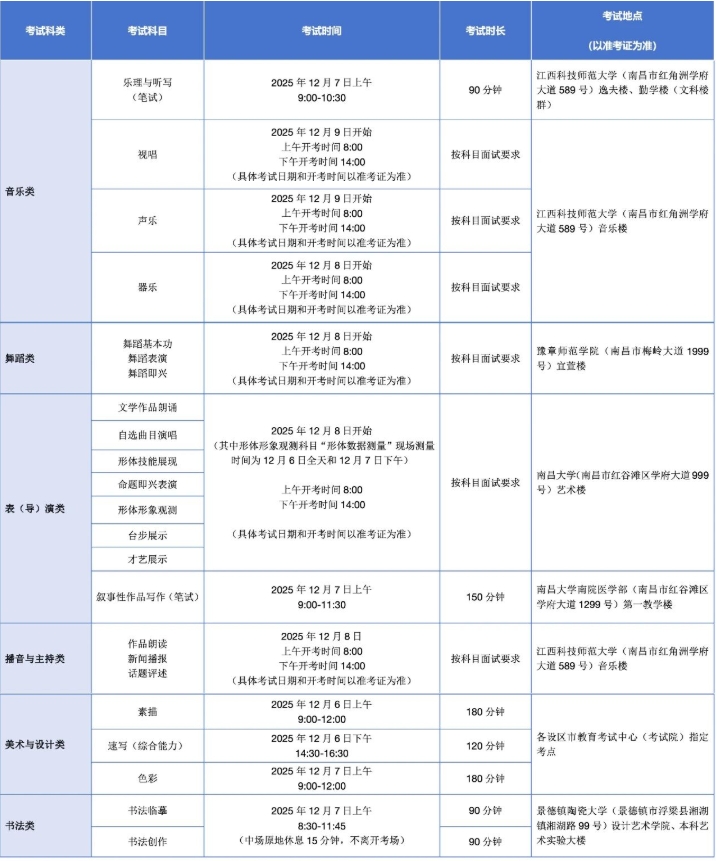 江西2026表(导)演类统考时间及地点安排如下: