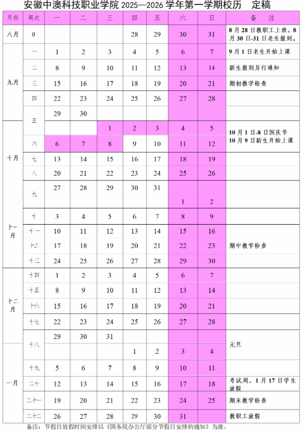 一到腊月,大学里就开始收拾东西准备放寒假啦!大多数学校都是1月下旬或二月初放假,到2月底、3月初再开学。放假期间,有的同学回家过年,有的留校搞科研、做实践。下面是2026安徽中澳科技职业学院寒假时间及开学时间,如有调整,以学校最新通知为准。